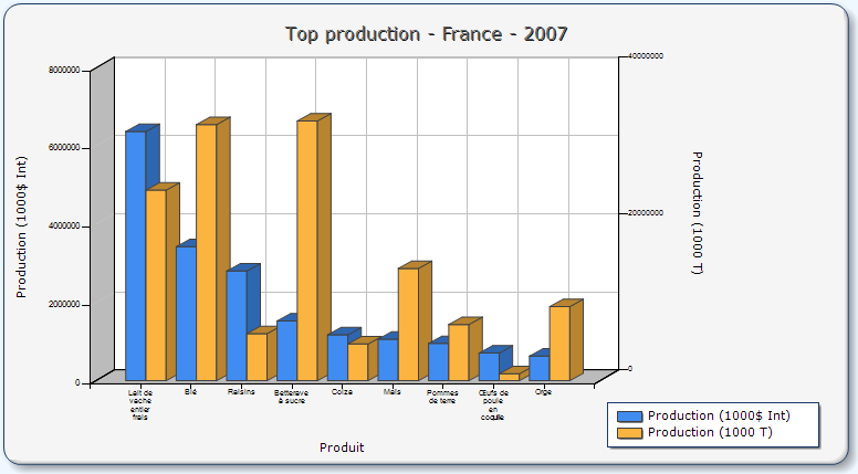 Après avoir testé, j’ai trouvé qu’effectivement on pouvait faire un grand nombre de requêtes simplement. Les séries statistiques s’arrêtent souvent pour la France en 2006 ou 2007. Il n’y a donc pas vraiment de possibilité d’usage sur des données très récentes. Les services Statistiques Français qui doivent être les fournisseurs de ces données ne sont donc pas très réactif dans la mise à disposition de ces données (où l’intégration est plus longue du côté FAO). En tout cas, la vision internationale est intéressante en plus de l’historique.