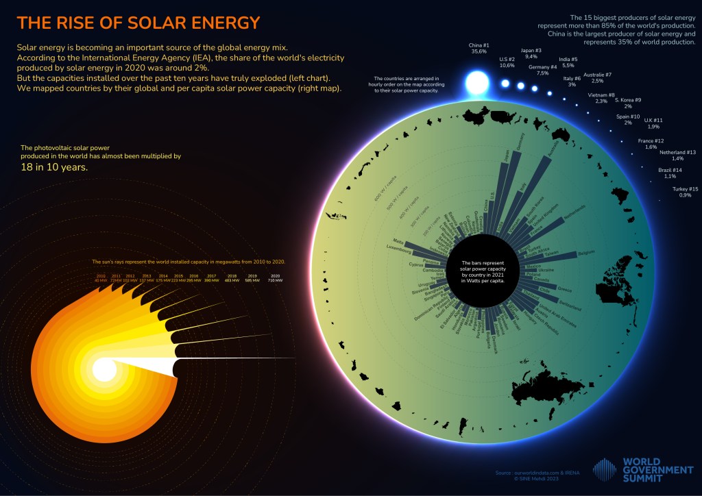 Ce travail m’a pris plusieurs heures durant le mois de janvier et ma participation au concours est surtout un prétexte pour me lancer sérieusement dans la création de dataViz. Je regrette un peu de ne pas avoir trouvé de données dans le cahier des charges du concours, sur l’agriculture. Je me suis donc intéressé aux données sur la production d’énergie solaire dans le mix énergétique mondial.